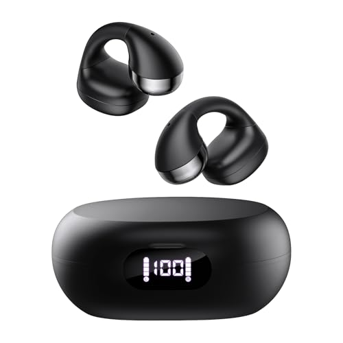 CXK Open Ear Headphones, Bluetooth 5.4 Clip on Earbuds Flexible Ear Clip Design Bluetooth Earbuds with LED Digital Display 30H Playtime Bone Conduction Headphones Lightweight Comfor for Gym