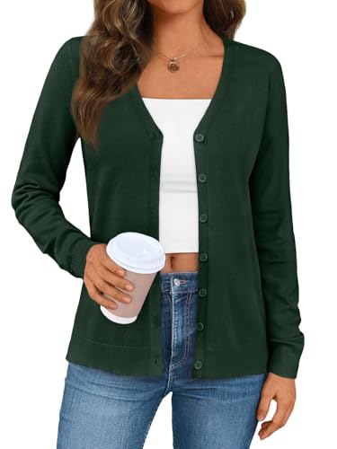 LILLUSORY Cardigan Sweaters for Women 2026 Trendy Summer Button Down Shirts Lightweight Sweater Knit Jackets Outfits DarkGreen L