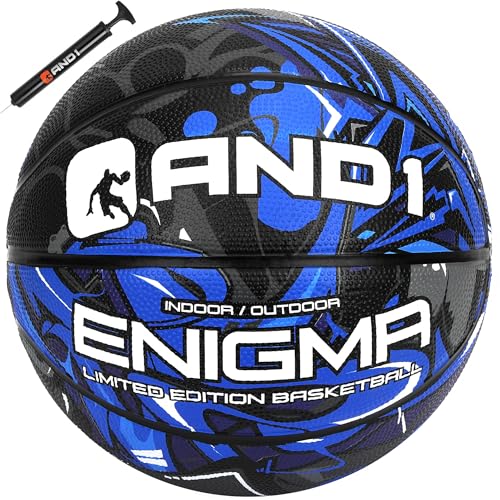 AND1 Enigma 27.5 Basketball : Youth Sized Rubber Streetball for Indoor and Outdoor Use, Deep Channel Construction and Durability, Includes 10” Pump