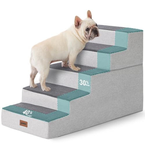 ZOMISIA Dog Steps for Large Dogs - Extra Wide Dog Stairs for High Bed 2 in 1 with Zippers Suitable, Foam Pet Stairs with Non Slip Bottom Grey 5 Steps, Grey