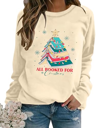 APRFLOWER Christmas Sweatshirts for Women Cute Christmas Tree Graphic Long Sleeve Shirt Xmas Holiday Party Pullover Blouse
