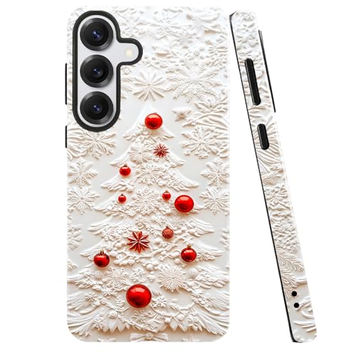 Case for Samsung Galaxy S25,Camera Protection Soft Glossy Phone Case - Christmas Tree White