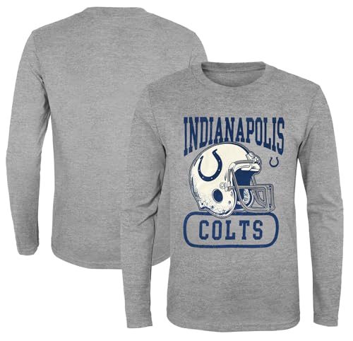 NFL Kids Youth 8-20 Head to Head Heather Gray Primary Logo Officially Licensed Football Long Sleeve Crewneck Cotton T-Shirt (Indianapolis Colts, 14-16)