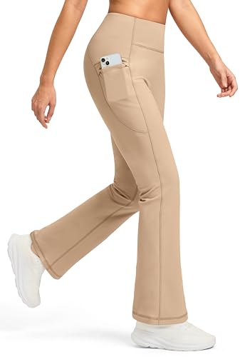 Jarvanv Women's Fleece Lined Pants with Pockets High Waist Thermal Flare Leggings Hiking Yoga Pants for Winter Cold Weather(Khaki, XXL)