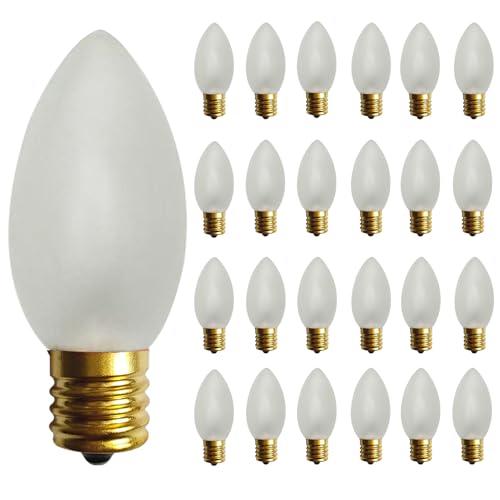 25 Pack C9 Frosted White Christmas Light Bulbs, C9 Frosted White Replacement Bulbs for Christmas Outdoor String Lights, 7W Incandescent Night Light Bulbs, C9/E17 Intermediate Base Bulb,120V 7W bulb