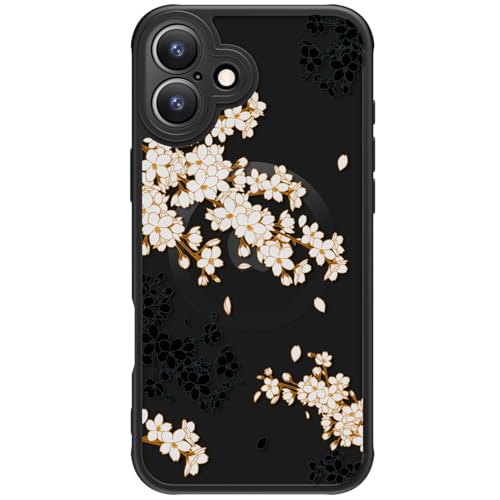 FUNMIKO for iPhone 17 Case Wireless Charging & Military-Grade Protection - Trendy Pattern Design for Women Girls, Matte Non-Slip Phone Cover with Shockproof Corners - Elegant Blossom Motif