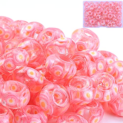 AIPRIDY Girls' Lucky Beads Lover Amber Beads, Big Hole Spacer Beads European Craft Beads for DIY Charms Bracelet Jewelry Making (Rose red)