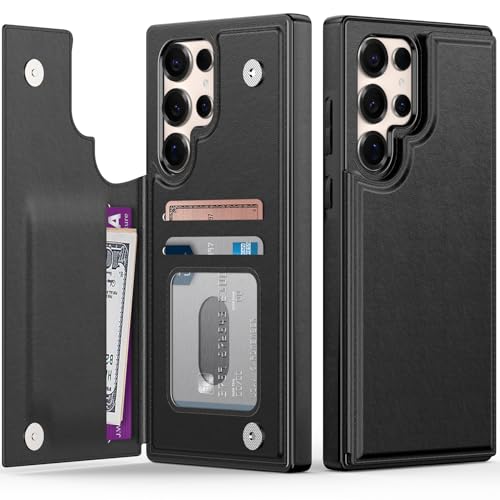 FUNMIKO for Samsung Galaxy S25 Ultra Wallet Case with Card Holder, RFID-Blocking, Military-Grade Protection & Floral Animal Design, Magnetic Closure with Leather Stand - Black