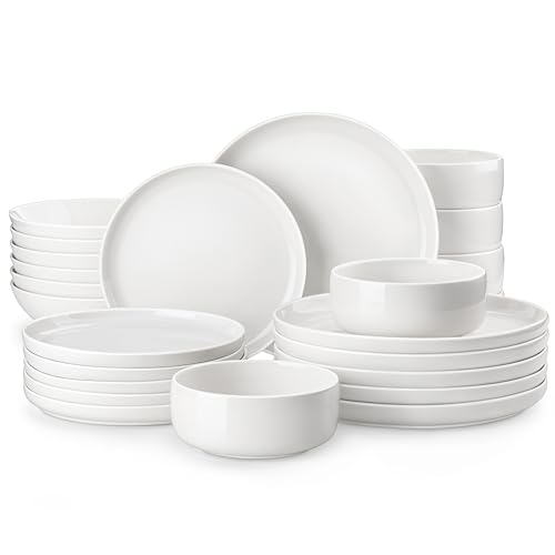 MALACASA Plates and Bowls Sets, 24 Pieces Modern Porcelain Dinnerware Set for 6 Ceramic Dishware Dishes White Kitchen Dinner Dining Ware Set Microwave and Dishwasher Safe, Series LUNA