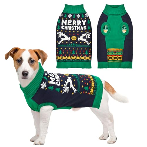 Vehomy Christmas Dog Sweater Xmas Pet Clothes Cat Puppy Turtleneck Knitwear with Christmas Trees Elks Snowflakes Xmas Knitted Sweaters Shirt Pullover Apparel for Small Medium Large Dogs L