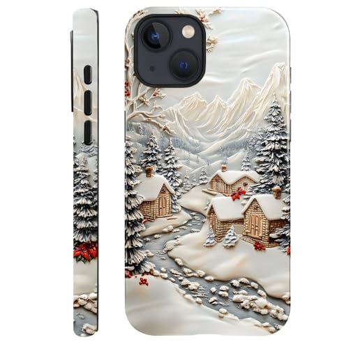 DAIZAG Case Compatible with iPhone 14,Glossy Durable Shock Protection Cover for Girl Women,Snowy Winter Landscape Christmas