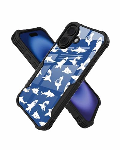 KWSAAHU Compatible with iPhone 16 Case Anti Slip Shockproof Hard PC Back Soft TPU Prevention Protective Case, Unique Design Fashion Print for Men Women - Blue Shark