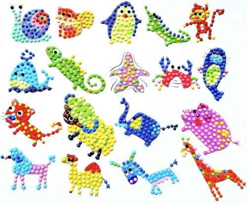 FONYANE Animal Mosaic Craft Kit for Kids, Educational DIY Sticker Art Set with 18 Colorful Animals, Creative Arts and Crafts Activity