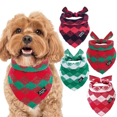 4-Pack Knitted Dog Bandanas with Slogans - Soft Warm Bandana for Small Medium Large Dogs, Winter Dogs Accessories Boy & Girl, Scarf for Birthday Holiday,Cute Dog Gifts
