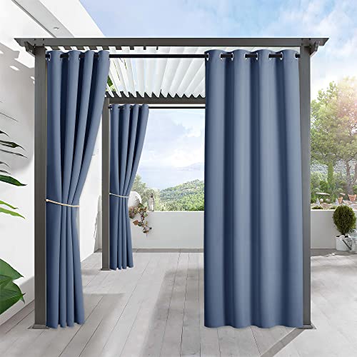RYB HOME Outdoor Extra Long Curtains for Patio - 120 inch Curtains Waterproof Farmhouse Decor for Sliding Glass Door Porch Gazebo Pavilion Cabana, W 52 x L 120, 1 Pc, Stone Blue