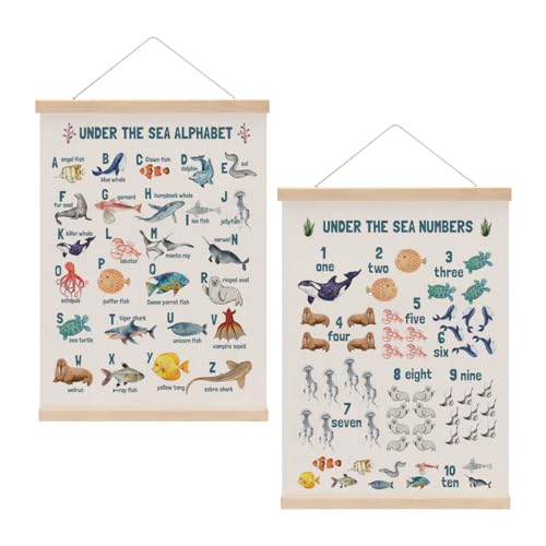 Number Chart Alphabet Poster Hanger, ABC Chart Wall Decor, Toddler Learning Posters, Educational Posters Homeschool Supplies, Sea Animals Wall Art Wall Hanging Banner Living Room Nursery Decor