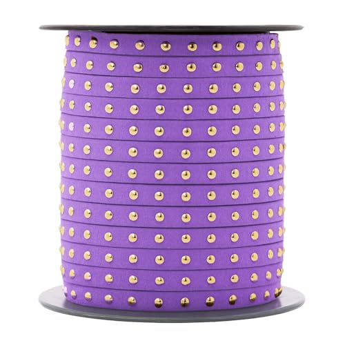 Mandala Crafts 20 Yards Light Purple Studded Faux Suede Cords Leather Trims - Flat Vegan Leather Lace Strips String with Gold Color Rivets for Jewelry Making, Crafts, Bracelets, and Decorations
