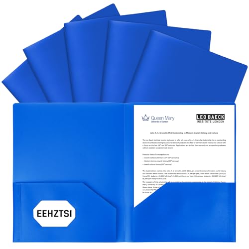 EEHZTSI 6-Pack Plastic Folders with Pockets,2-Pocket Poly Folders Holds 8-1/2" x 11" Paper for School/Office/Home, Blue