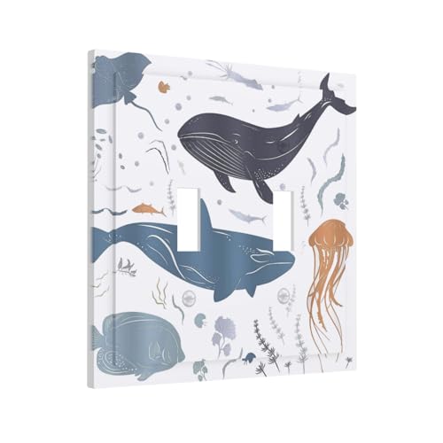 Wpshijia Kids Sea Animal Decorative 2 Gang Light Switch Plate Cover Double Toggle Wall Plate Decorative Switchplate Electrical Faceplate for Nursery Kidsroom Bedroom Decor