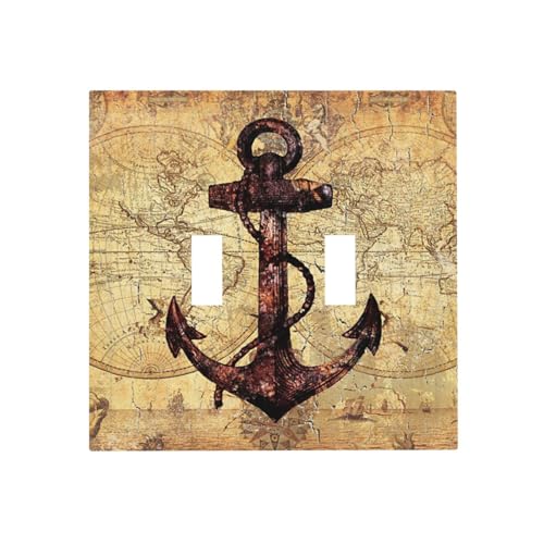 Yamxbfa Anchor Nautical Vintage Map 2 Gang Light Switch Plate Cover Double Toggle Wall Plate Decorative Switchplate Electrical Faceplate for Office Livingroom Home Decor