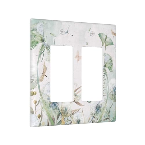 Dual Outlet Covers Wall Plate Watercolors Flowers Insect 2 Gang Rocker Decora Light Switch Covers Decorative Switchplate Electrical Faceplate Gfci For Farmhouse Decor