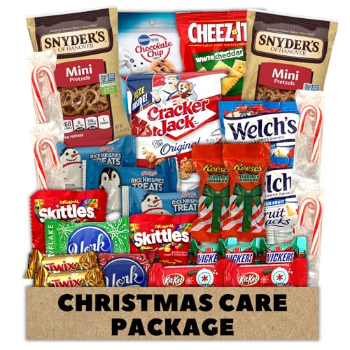 Munchie Mountain 40-Count Christmas Care Package and Snack Box Gift for College Students, Children, Friends and Family