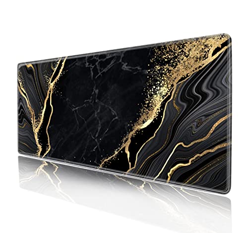 HUOCAIREN Large Gaming Extended Computer Mouse Pad with Anti Slip Rubber Base for Office Home Laptop, Keyboard Mouse Mat Desk Pad, Black and Gold Marble