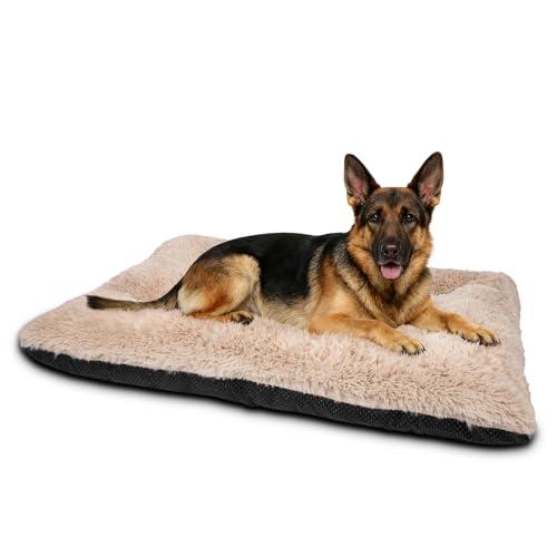JOEJOY Large Dog Bed Crate Pad, Deluxe Plush Washable Dog Beds Fulffy Soft Kennel Pad Anti-Slip Pet Sleeping Mat for Extra Large Medium Small Dogs, 47" x 29", Beige