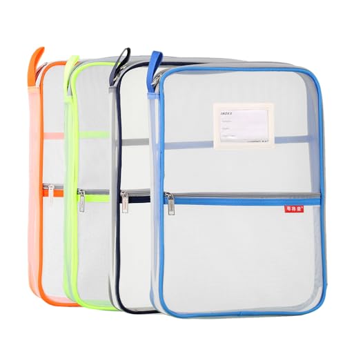 Pendancy Mesh Zipper Pouch 14.8x10.8 in Transparent Lightweight Nylon File Folders, A4 Size Multi-layer Subject Document Organizer Accessories Storage bag for Office and School Supplies(4 PCS)