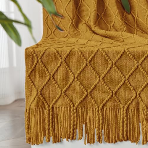 inhand Knitted Fall Throw Blanket for Couch and Bed, Knit Fall Decor Halloween Blanket with Tassel, Brown Lightweight Decorative Farmhouse Warm Woven Blankets and Throws for Women, 50"x60"