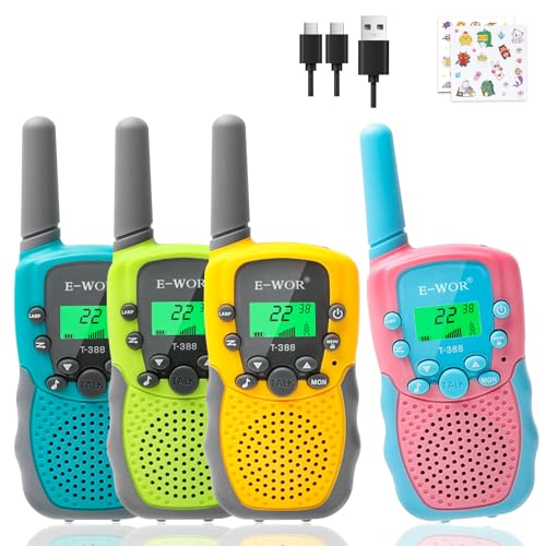 E-WOR Walkie Talkies for Kids, 4 Pack 3KMS Long Range Rechargeable Walkies Talkie Toy with Flashlight Adventure Toys for 3 4 5 6 7 8 9 10 11 12 Year Old Boys Girls, Great for Kids