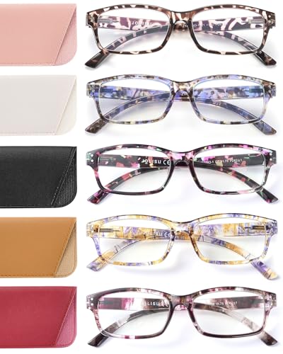 JOLISU Reading Glasses for Women Men - 5 Pack Ladies Fashion Readers Computer Eyeglasses W/Spring Hinge - Blue Light Blocking Reading Glasses Anti Eyestrain 4.0