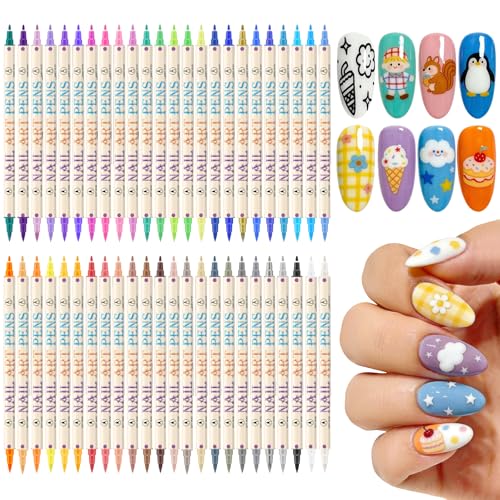 48 Colors Nail Art Pens Set, 3D Nail Polish Pens Quick-Drying Acrylic Paint Markers,For Nail Art Drawing Painting Nail Point Dotting Liner Pen, Nail Design Kit Manicure Tools Home & Salon DIY