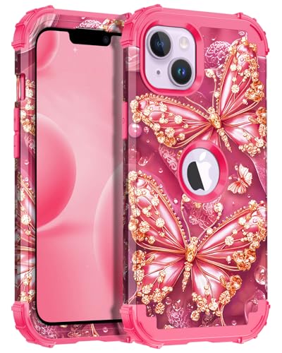 Miqala Compatible with iPhone 14 Plus Case,Glow in The Dark Three Layer Heavy Duty Shockproof Hard Plastic Bumper+Soft Silicone Protective Case for Apple iPhone 14 Plus,Rose Gold
