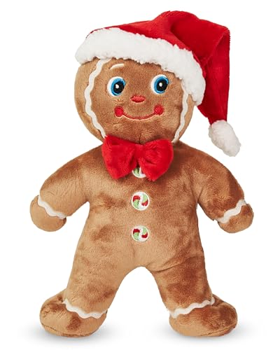 Bearington Jolly Ginger Christmas Stuffed Animal - 10" Soft Gingerbread Man Christmas Plushies with Bow Tie, Santa Hat, Weighted Body and Peppermint Buttons - Festive Gift for Kids and Holiday Decor