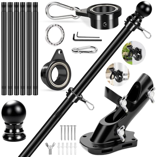 Flag Poles Kit with Bearings Rings & Flag Bracket, 7 FT 360° Spinning Flag Pole Stainless Steel Flagpole with Bearing Steel Ball Swivel Rings Clips & 2-Position Holder for Outside House Wall Mounted