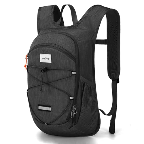 HALOVIE 15L Foldable Hiking Backpack Phone Pocket Lightweight Travel Daypack Shoulder with Chest Strap Small Packable Pack for Walking Women Men (Black)
