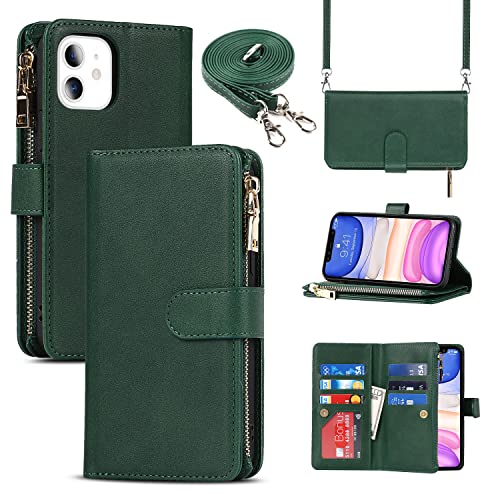 Cavor for iPhone 11 Wallet Case,for iPhone 11 Case with Strap Stand,Card Holder for Women Men,Leather Magnetic Protective Phone Case Cover,Dark Green
