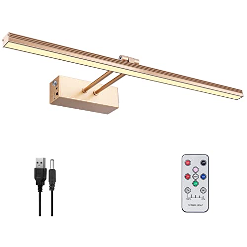 FUNCHDAY Picture Light,Battery Art Lights for Wall,Wireless Remote Painting Light with Timer and Dimmable,16”Metal Display Lighting for Artwork,Portrait,Gallery-Rosegold