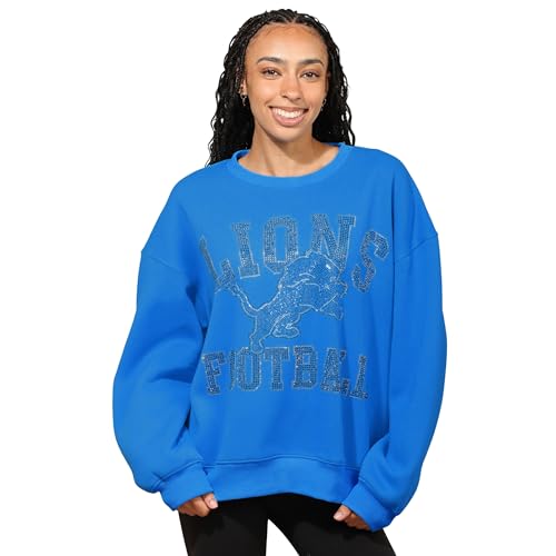 FOCO Detroit Lions NFL Womens Rhinestone Logo Oversized Crew Neck Sweatshirt - M