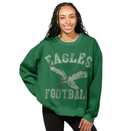 FOCO Philadelphia Eagles NFL Womens Kelly Green Rhinestone Logo Oversized Crew Neck Sweatshirt - M