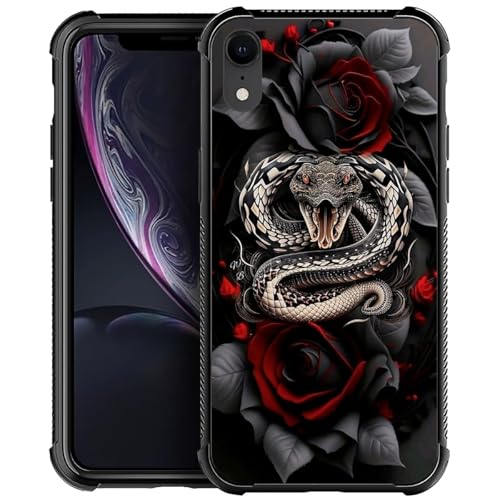 FKBRCL4U for iPhone XR Case, Entwined Rose Snake Pattern Graphic Design Girl Boy Soft Silicone Hard Acrylic Shock Protection for iPhone XR