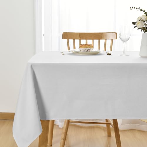 JIUZHEN Faux Linen Farmhouse Tablecloth Rectangular, Wrinkle Stain Resistant Table Cloth Rectangle Table Cover for Kitchen Dining, Holiday Party Dinner, White, 60 x 102 Inch