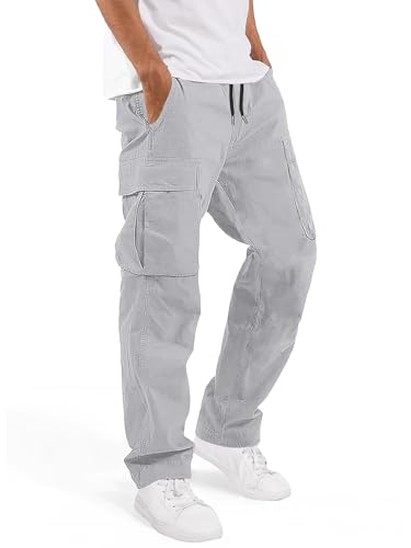 Tallemon Men's Casual Cargo Pants 30/32/34/36 Tall Inseam Hiking Pants Workout Joggers Loose Straight Sweatpants for Men 34" Light Grey S