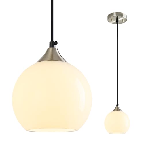 LBSQJ Milky Luster Glass Pendant Lights Kitchen Island Globe Pendant Light Fixtures Modern Pendant Lighting for Bedroom Living Dining Room Light Fixture (5.9 in, 1 Pack)