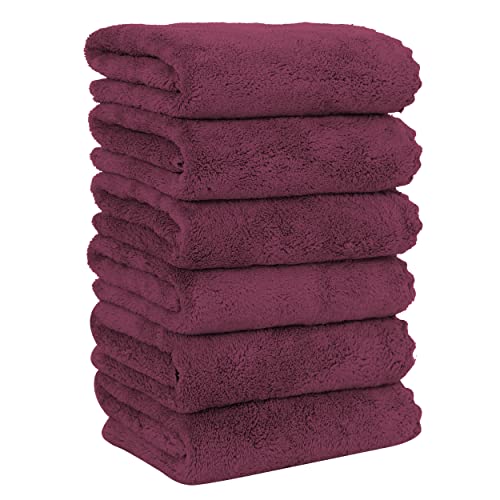 MOONQUEEN 6 Pack Premium Hand Towels - Quick Drying - Microfiber Coral Velvet Highly Absorbent Towels - Multipurpose Use as Hotel, Bathroom, Shower, Spa, Hand Towel 16 x 28 inches (Burgundy)