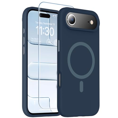 toaksi Magnetic for iPhone Air Case [Compatible with MagSafe] [Soft Anti-Scratch Microfiber Lining],Premium Silicone with Screen Protector,Shockproof Protective iPhone 17 Air Phone Case,Midnight Blue