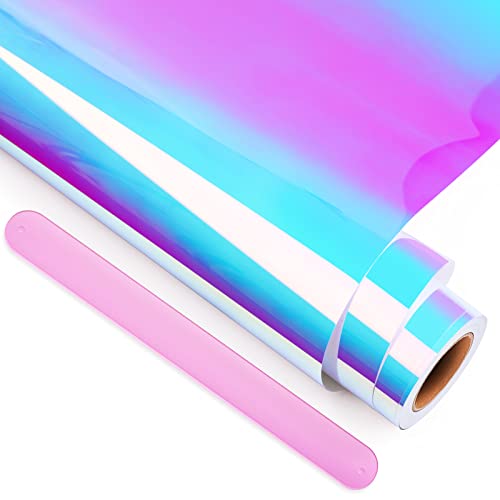 GIRAFVINYL Pink Holographic Permanent Vinyl, 12" X 30ft Rainbow Glossy Pink Vinyl for DIY Cup Home Decorations, Stickers