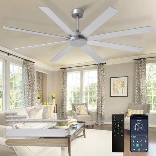 Depuley Large Ceiling Fan without Light: 72 Inch Indoor/Outdoor Fan Reversible DC Motor 6 Speed - Dual 8 Blades Big Ceiling Fans with No Light for Living Room Covered Patio, Silver
