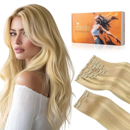 DOORES Seamless Clip in Hair Extensions Real Human Hair Extensions, Natural Black Mixed Chestnut Brown 110g 16 Inch 7pcs, Invisi Edge Hair Extensions Straight Hair Remy Natural Hair